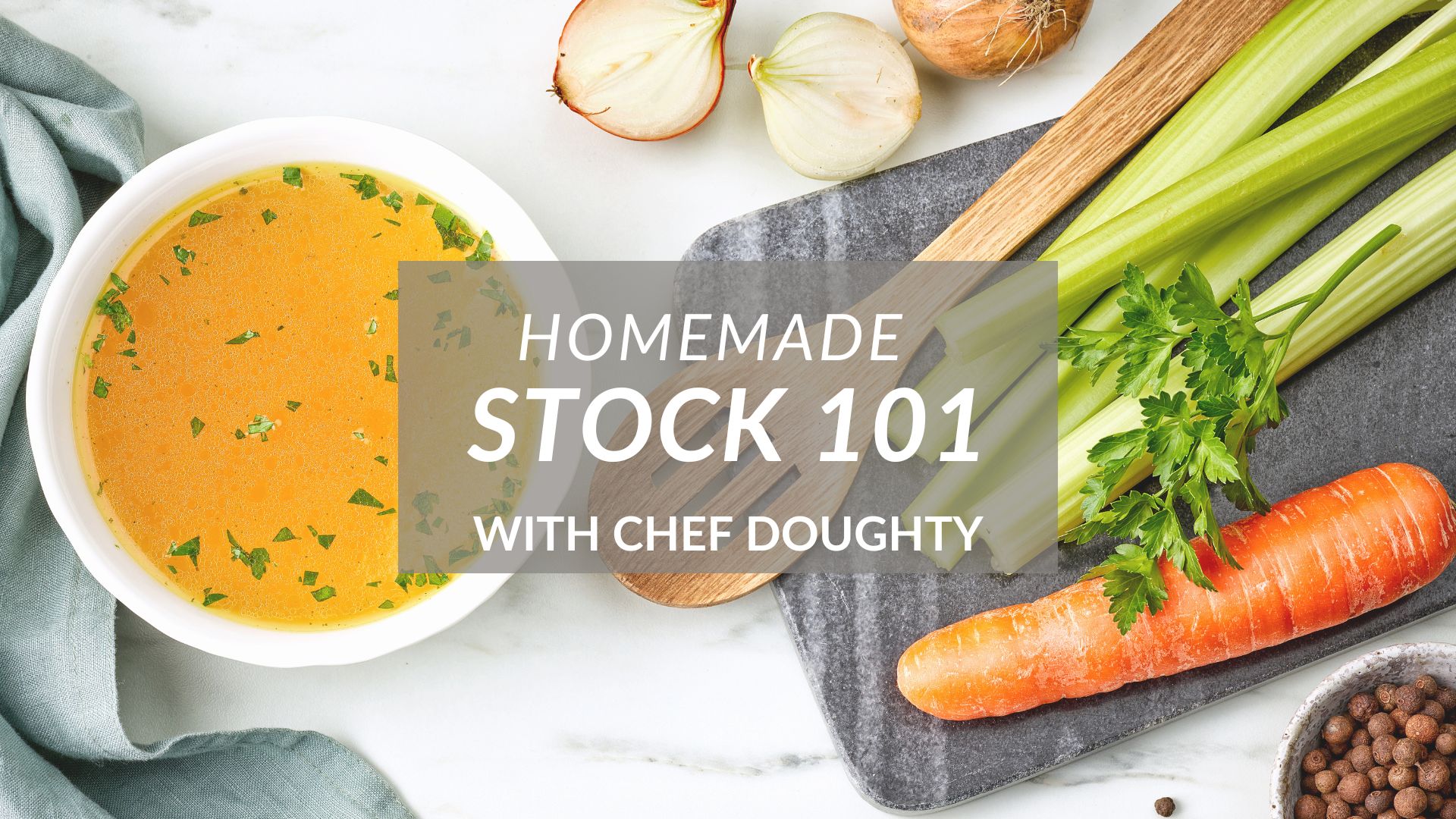 A note from Chef Joyce Doughty…I studied French cooking techniques at Le Cordon Bleu and I appreciate the rigorous instruction I received in classical cooking.  But practically speaking, there are times when one must put on a simpler hat which will still yield wonderful outcomes. That is true when speaking of stocks. There are cookbooks devoted to the complexities of making a delicious stock. But for our purposes we are going straight to the practical.